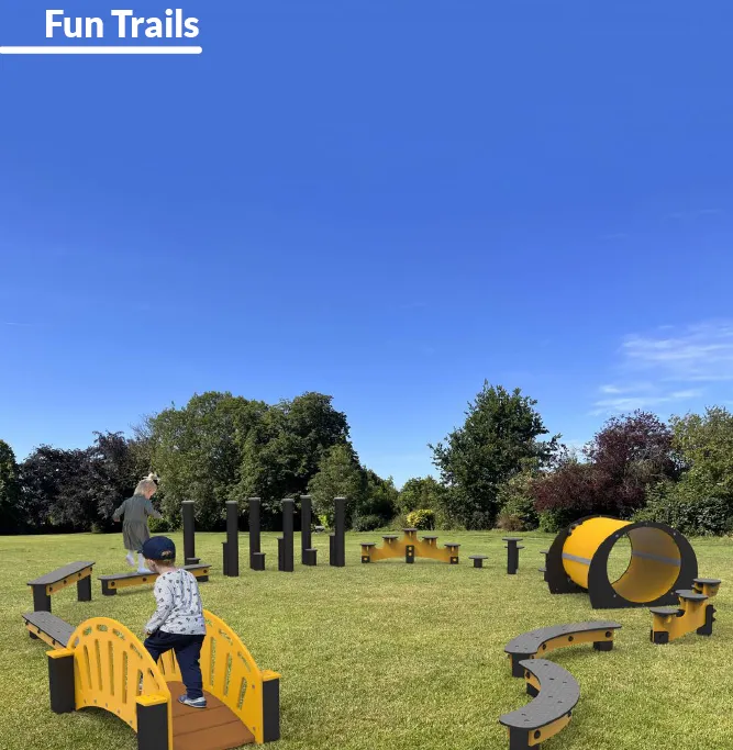 Our low-level Fun Trail products are specifically designed for young children, with a focus on safety and child-friendly surfaces. Made from durable HDPE, they are low maintenance and built to withstand the rigors of active play. This 15-piece Fun Trail set features easy-to-use modules, making it ideal for younger children to explore and enjoy.