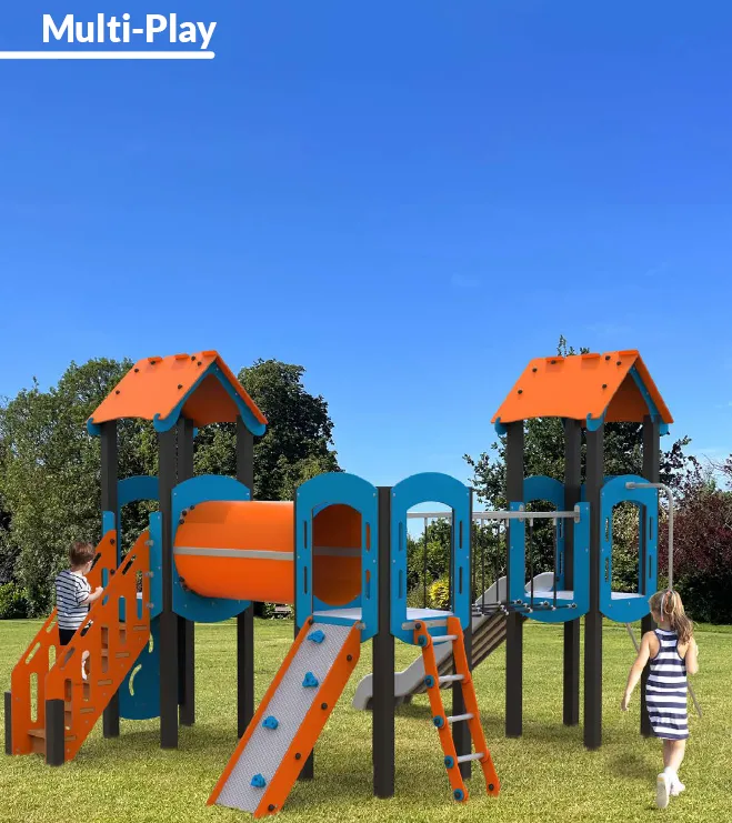The Multi-Play Tower Systems offer a range of tower structures featuring Eco-Posts, scalable to fit both small and large spaces and suitable for a wide range of ages and abilities. Platform heights are available in 0.6m, 0.9m, 1.2m, and 1.5m.