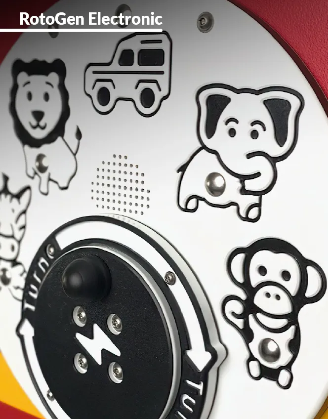 Competitive and engaging electronic activities designed to get children moving, powered by our RotoGen human-powered energy system. These interactive games, reactions, and sound panels are driven by the RotoGen super-efficient dynamo.