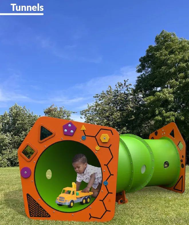 Children love playing and hiding with friends in our fun, themed playground tunnels. Our range of crawl-through tube tunnels can be configured in various layouts and sizes to fit your play space. Available with themed entry panels, these tunnels offer an enhanced play experience. Choose from lengths of 1.8m, 2.9m, or 3.5m. Designed for both above and below ground use, these tunnels are perfect for creating dens and hideaways where children can explore and imagine.