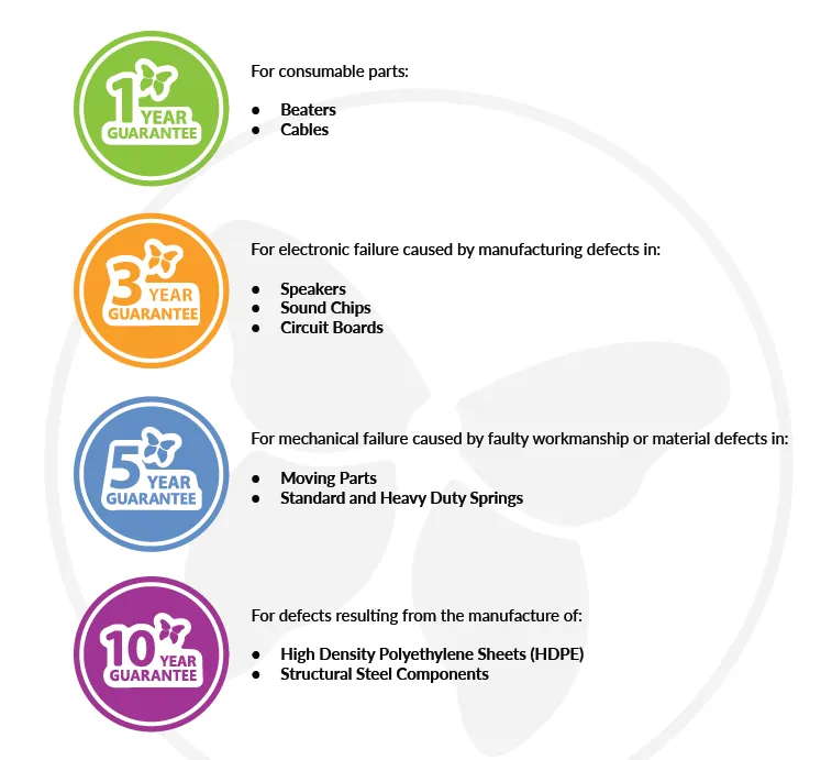 All our Springers are built with HDPE panels, steel powder-coated springs, slip-resistant Polydek-Eco seats, and plastic foot/hand holds for long-lasting durability. They are TUV certified to EN1176 playground standards, and the springs come with a five-year guarantee.